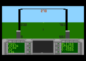 I tu jest dla mnie zagwostka… Gra jest symulatorem lotu, a mnogość opcji wbija zwykłego śmiertelnika i laika takiego jak ja w podłogę – po prostu nie umiem jej obsłużyć. Gra jest mocno realistyczna (oczywiście jak na 8-bitów) i została wycofana przez autora w zeszłym roku… Bo chciał wprowadzić poprawki, a te pojawiają się dość regularnie. Jest tryb gry dla laików takich jak ja, ale i dla osób zaawansowanych. Bardzo bym chciał, aby filmik o niej zrobił Nowy80 Retro, bo to jego ulubiony typ gier. Na pewno trzeba docenić kunszt autora i trzeba posiedzieć w wolnej chwili (a takiej teraz mi brak) do opanowania gry. Na pewno warto, jak dla mnie mocny tytuł, który może być niedoceniony z uwagi na swoje wymagania, ale jakby powstał w epoce – zawstydziłby wiele z ówczesnych „symulatorów”, a w takie grałem swego czasu. I były łatwiejsze… (albo ja byłem młodszy i szybciej przyswajałem tryby gry…).