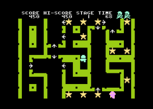 Kolejny tytuł tegoż autora. Zaprawdę powiadam Wam, że to dziwna gra. W pierwszej chwili się zastanawiałem, jak w to grać. Musimy się pozbyć duszków, które zjadają kropki, ale… one znikają, gdy wejdziemy na hamburgera, a wtedy można się zorientować gdzie są po znikających kropkach. Naszą bronią jest chyba święcona woda, w każdym razie jakieś wielkie krople…