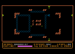 Zadaniem gracza jest zjedzenie z planszy wszystkich przeznaczonych do tego pól. Gra dość prosta, ale wymaga też sprytu – czasem, aby się dostać do jedzenia trzeba skorzystać z… wrogów strzelających do nas, bo potrafią oni rozbijać ściany, które dla nas są przeszkodą nie do zdobycia. Czasem trzeba się nakombinować. Aha, gra ma zapisany 2024 rok, a nie 2025, ale przypuszczam, że była puszczona w 2025 roku (zresztą na konkurs ABBUCa).