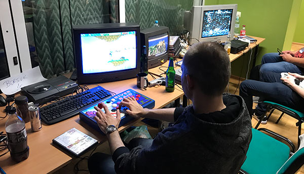 Cholercia! Miałem napisać króciutki rzut okiem do wpisu WojTa – a widzę, że znowu mnie poniosło… Jednak żeby nie przedłużać teraz trochę ogarnę się w sobie i dam bardziej skondensowane treści. Po prostu nie będę się powtarzał za WojTem, gdyż wszystko już ładnie nasz cybernetyczny bard opisał. Jedziemy chybcikiem! Przywieziona przeze mnie Maszyna Czasu (Raspberry Pie) z tysiącami gier i zabudowana w drewniany arcade stick zrobiła prawdziwą furorę wśród retro graczy. WojT podłączył do niej swojego zajebistego olbrzymiego arcade sticka i wtedy to był dopiero wypasik! Szczególnie dla pewnej dwójki sympatycznych stałych bywalców retro zlotów, którzy katowali na niej godzinami swoje ulubione hiciory z młodości. Cieszę się, że się przydała! Nicków tych jegomości nie pamiętam, ale byli to chyba Grave i Otemoch. Jeżeli błędnie napisałem zaraz poprawię, obiecuję.