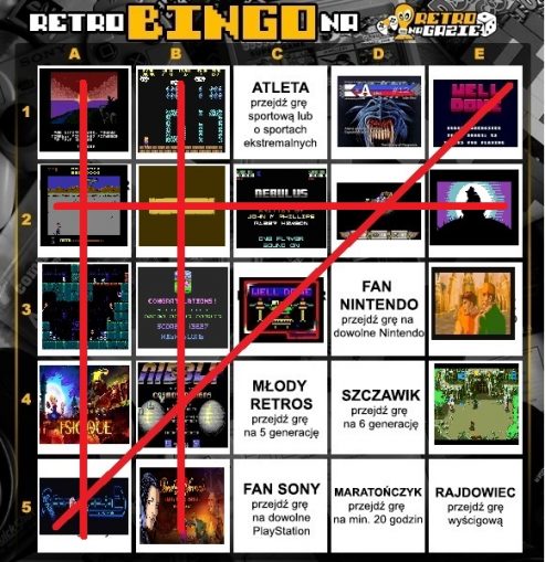 Ja to w ogóle myślałem, że całe to bingo to nie dla mnie. Ogólnie nie mam czasu za wiele na hobby, nie gram w gry ostatnimi czasy (poza wyjazdami na zloty, gdzie to gram w opór – jeśli tylko mam taką możliwość). A poza tym, po szybkim przejrzeniu tabelki, wyglądało na to, że to Bingo jest tylko dla tych, co grają w NextGeny albo PC. Pomyślałem zatem, że przyjrzę się tylko jak inni się tu angażują. Ale im dłużej się tabeli przyglądałem i im więcej filmów na Gramy na Gazie czy recenzji na Retro na Gazie czytałem, tym bardziej zaczęło mi się w głowie układać, że być może coś da się wyskrobać z gier retro, bo tylko takie mnie interesują, co pozwoli zaliczyć jedną lub dwie linijki. No i zacząłem coś wieczorkami sobie uruchamiać na moim PSP z emulatorkami – jest to obecnie najczęściej wykorzystywany przeze mnie sposób do grania, bo po prostu jest pod ręką i jak już leżę grzecznie pod kołderką w łóżeczku i już wszystkie zdrowaśki odmówiłem i przeczytałem lekturę, którą aktualnie przy łóżku trzymam, to jeszcze paręnaście/dziesiąt minut mogę pograć. Dodatkowo, ma to to taką zaletę, że można uśpić w trakcie gry i dokończyć na drugi dzień. Można też zasejwować – przy czym od razu zaznaczam, że w bingo rozgrywkach zaliczałem TYLKO takie gry, które kończyłem bez sejwa (oczywiście nie jestem hardcorem jak Borsuk, więc dla mnie jeśli gra miała możliwość kontynuacji, to jej ukończenie przy użyciu takowej również zaliczałem sobie jako krateczkę). Na początku szło mi tak sobie, w sumie przez pierwsze tygodnie, tylko się przyglądałem to tu, to tam i wybrałem na początek przekątną, bo stwierdziłem, że będzie najłatwiej – wiedziałem po prostu, że pojadę na imprezę (Retronizacja 3), czyli przynajmniej jedna kratka jest pewna :)